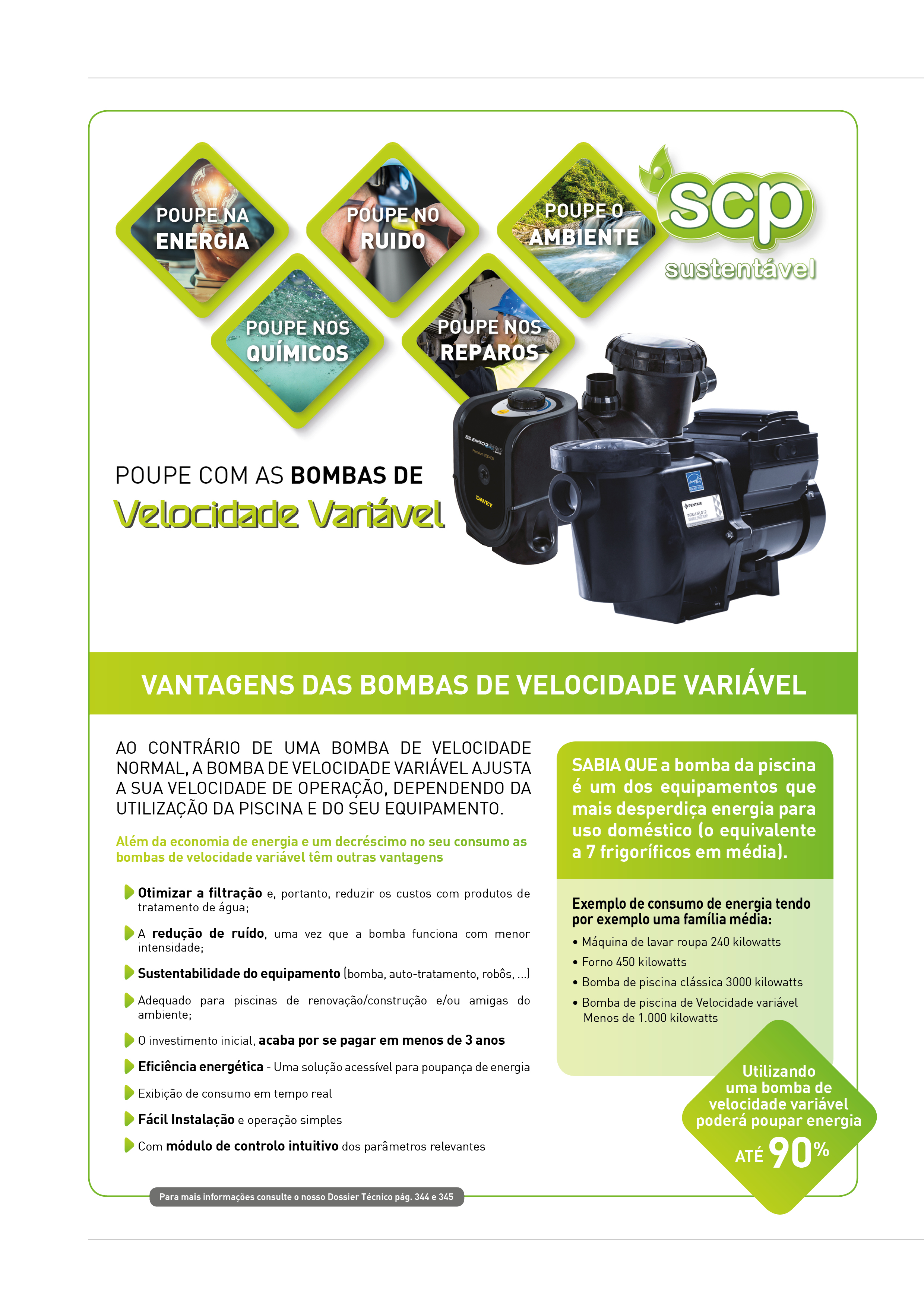 A tecnologia de velocidade variável representa um avanço formidável em termos de rendimento energético, características técnicas e funcionamento silencioso. Estas características marcam uma séria oposição às bombas de piscina tradicionais, as quais implicam consumos de energia consideráveis.